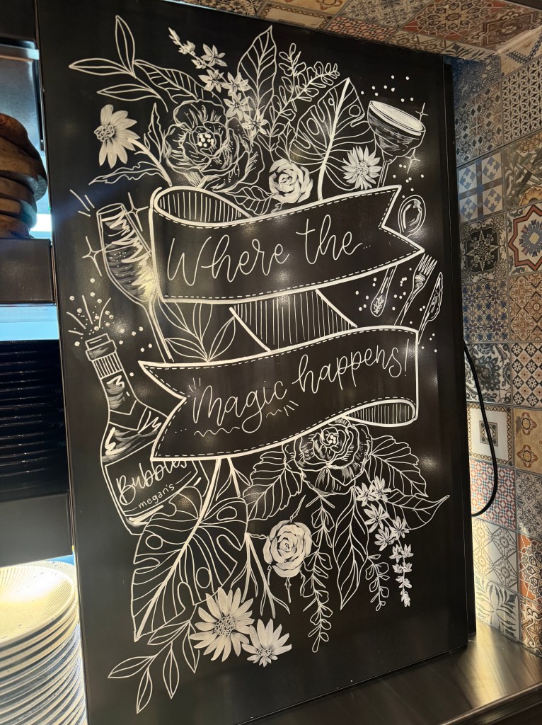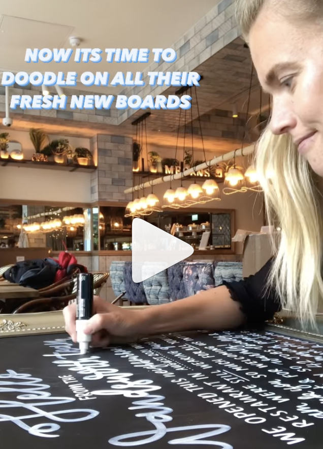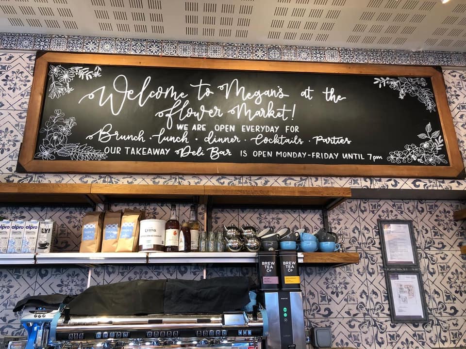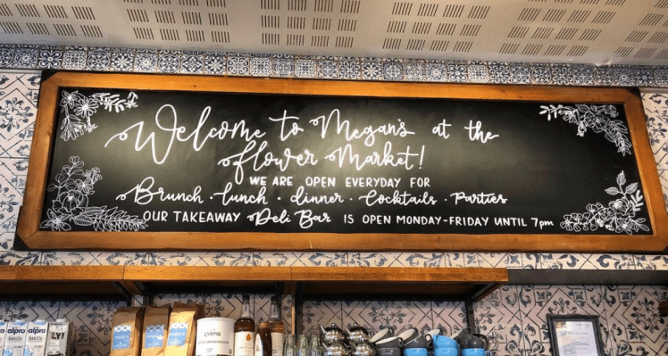 You may have also seen her handwriting across the well known London Restaurant chain- Megan’s. Her doodles are the branding that has 19 restaurants across all of London & now a few more outside of London. She uses her writing and floral illustrations taking essence from the beautiful interior on the Chalkboard signs, Menus and promotional signs.