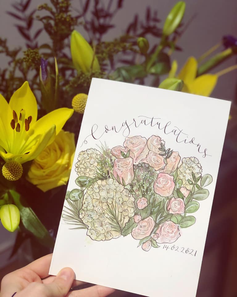 Any bookings, questions or if you just fancy a chat drop me an email or DM on instagram. HannDrawn will be able to give you a cost for the cards they range from £20-30 for a5. She can provide simple text cards, illustrations with colour or black white and even raised up / 3D cards to give them extra WOWfactor.