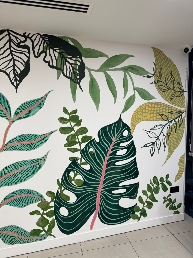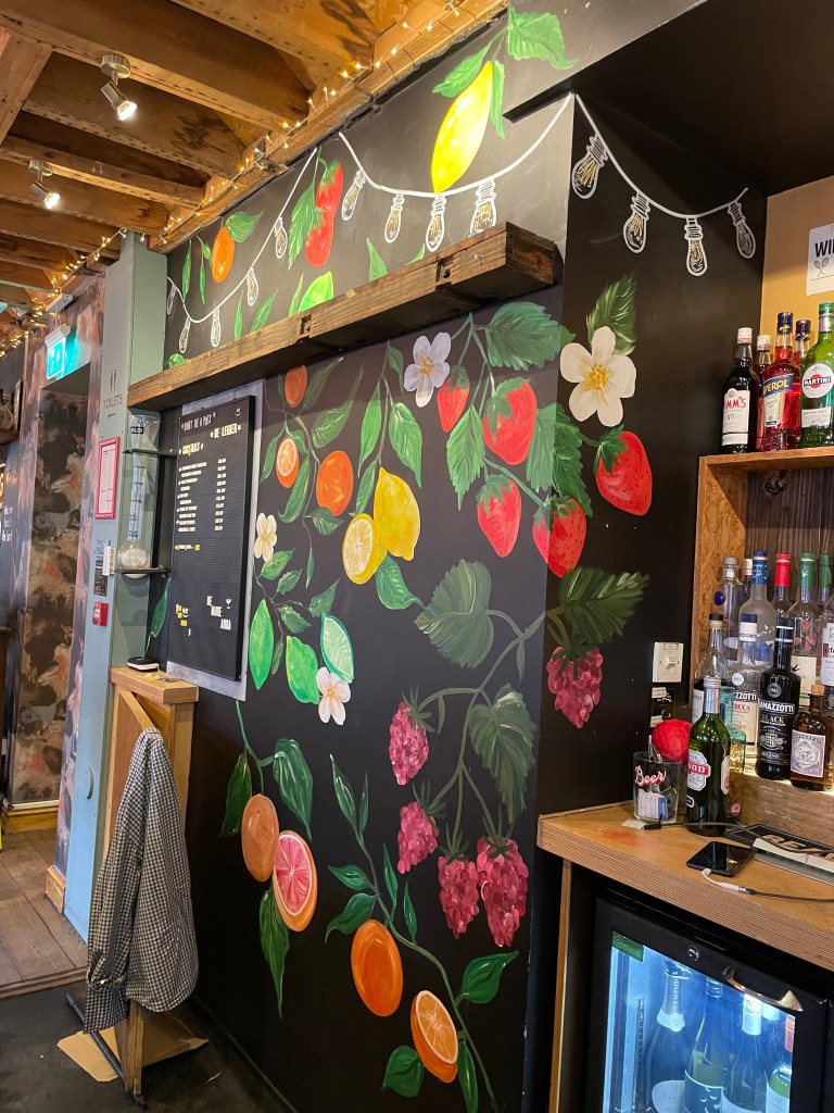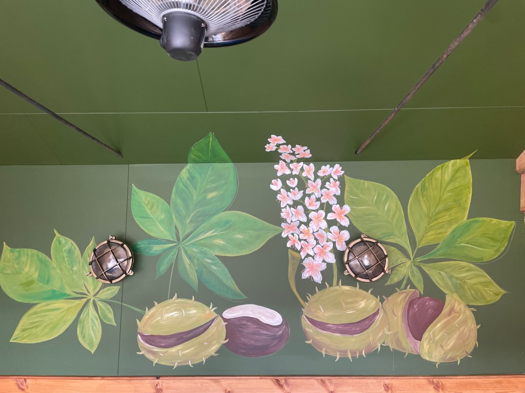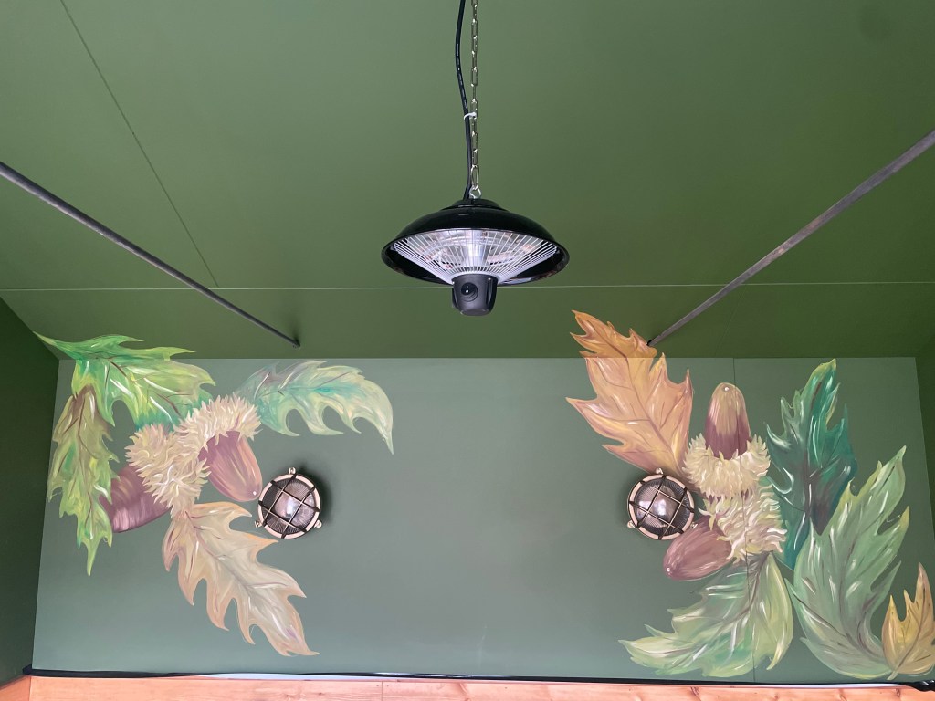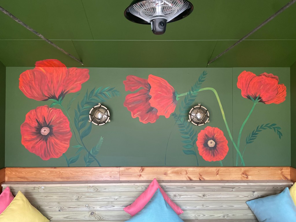 WALL ART ON 6 OUTDOOR GARDEN HUTS AT THE YOUNGS- CHEQUERS PUB IN WALTON ON THAMES. HANNDRAWN COLLABORATED WITH ANOTHER ARTIST – @MATTSWAN5 TO CREATE THESE FLORAL / BOTANICAL ARTWORKS HAND PAINTED.