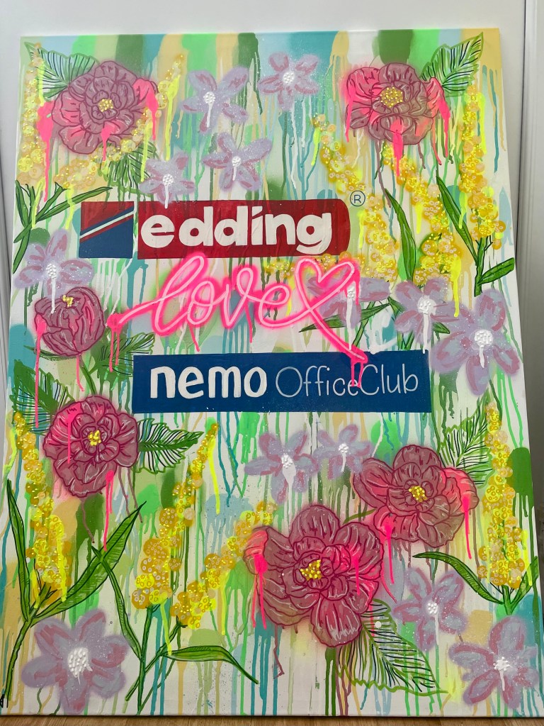 Edding Markers contacted me to ask for a commission using all their products, as they were heading to an event and wanted to showcase all their pens, markers and paints that they work on canvas!
