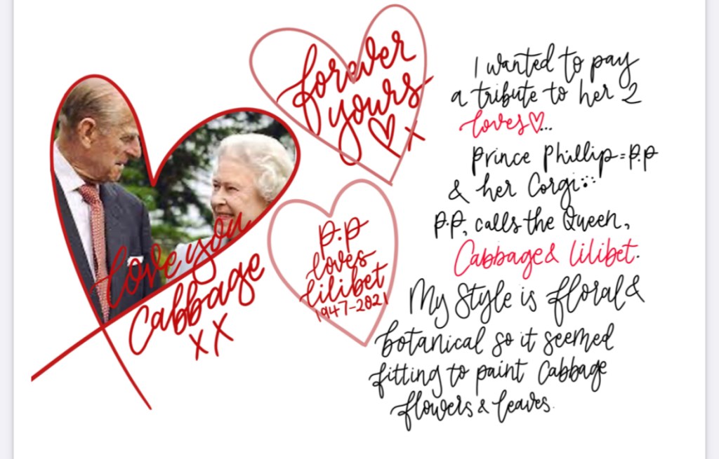 HannDrawn was 1 of 19 artists chosen to paint over a statue of a corgi for the celebration of the queens jubilee. With my passion for floral and botanical illustrations with the combination of the Queen & Phillip’s Love story created Willow. The Queens nickname from Phillip was Cabbage and I designed a cabbage flower artwork that I hand painted over the Corgi. This has been displayed on the corgi trail at point 7 in Cardinal Place, Victoria London.
