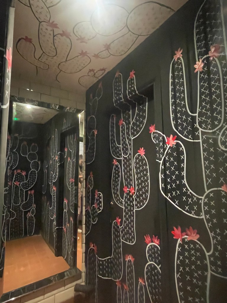 CORROCHIOS CATINA, DALSTON– Womens toilet mural with cacti pattern inspired by the Mexican pottery.