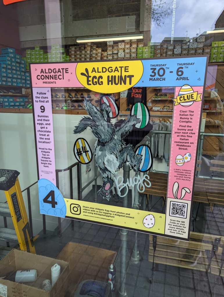9 Hann-illustrated Bunnies around 9 locations in Aldgate East.