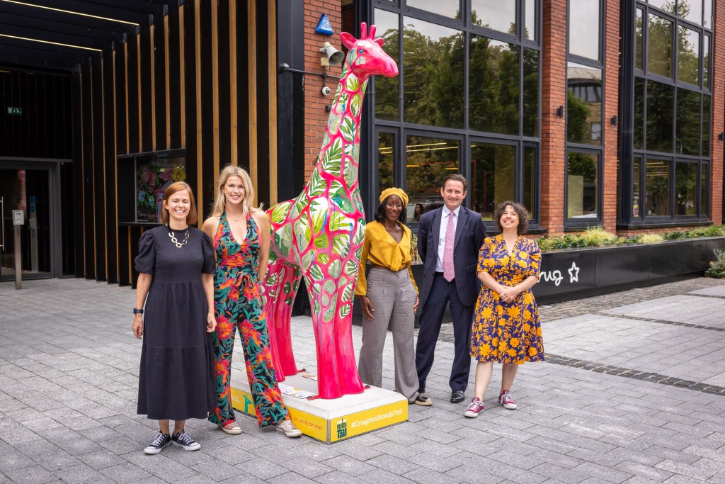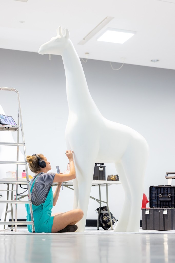 HannDrawn is 1/30 artists selected to paint a Giraffe for the Croydon Stands Tall trail. HannDrawn’s Giraffe was sponsored by Superdrug and her Giraffe was stationed outside their Head Office. Her Design was called DEW. It was inspired by her passion of painting botanical leaves and flowers. She found out that Giraffes can go a few days to a couple of weeks without drinking water because they get all their water from the vegetation they eat. With this idea, she created a pattern of leaves underneath the unique pattern of the giraffe. The blue drips on top symbolises the water from the vegetation and of course the iconic hot pink background for Superdrug.