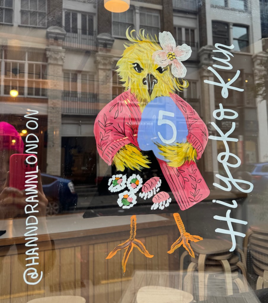 HannDrawn brings colour and creativity to more than just windows and signs—she can transform walls in your office, restaurant, or even your home with custom artwork, both indoors and out.