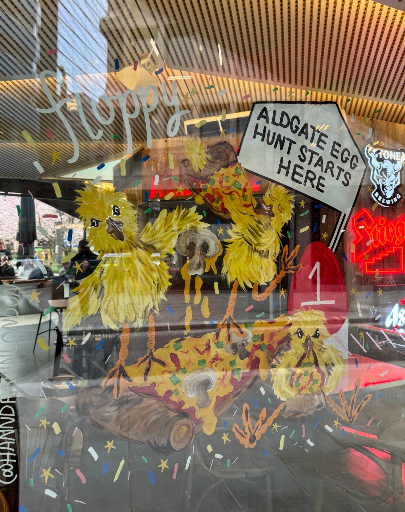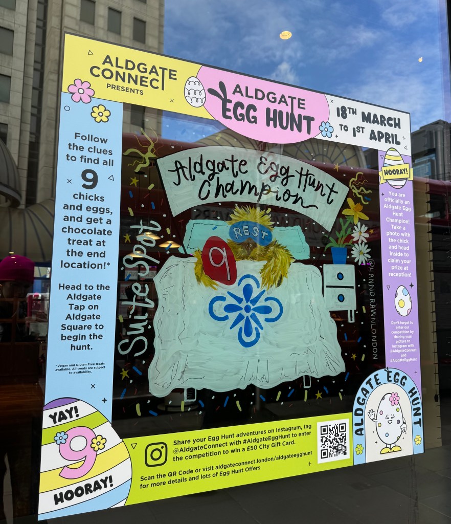 9 Hann-illustrated Chicks around 9 locations in Aldgate East.