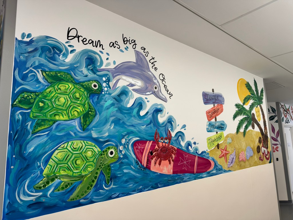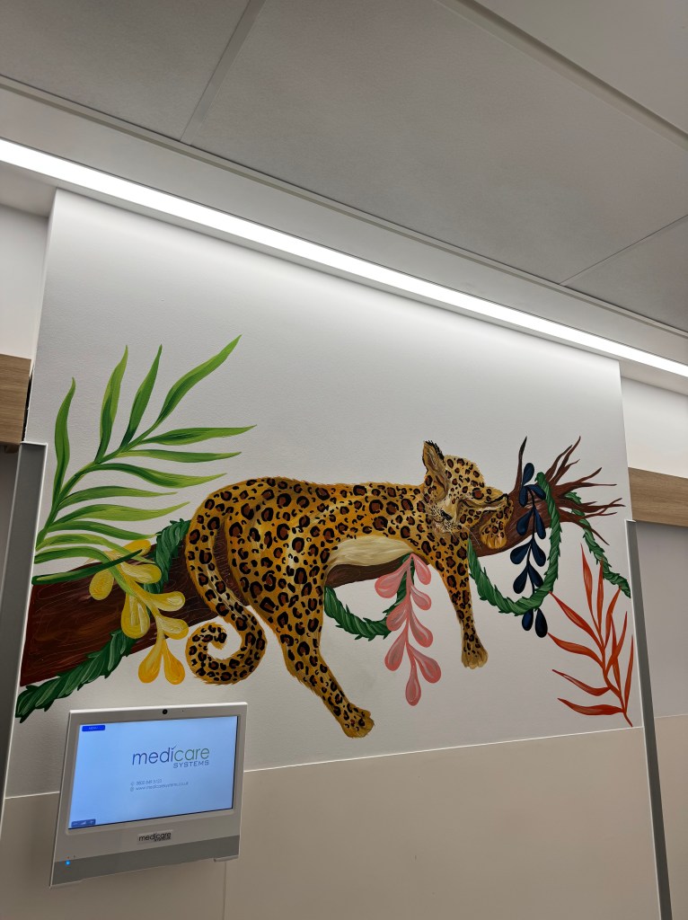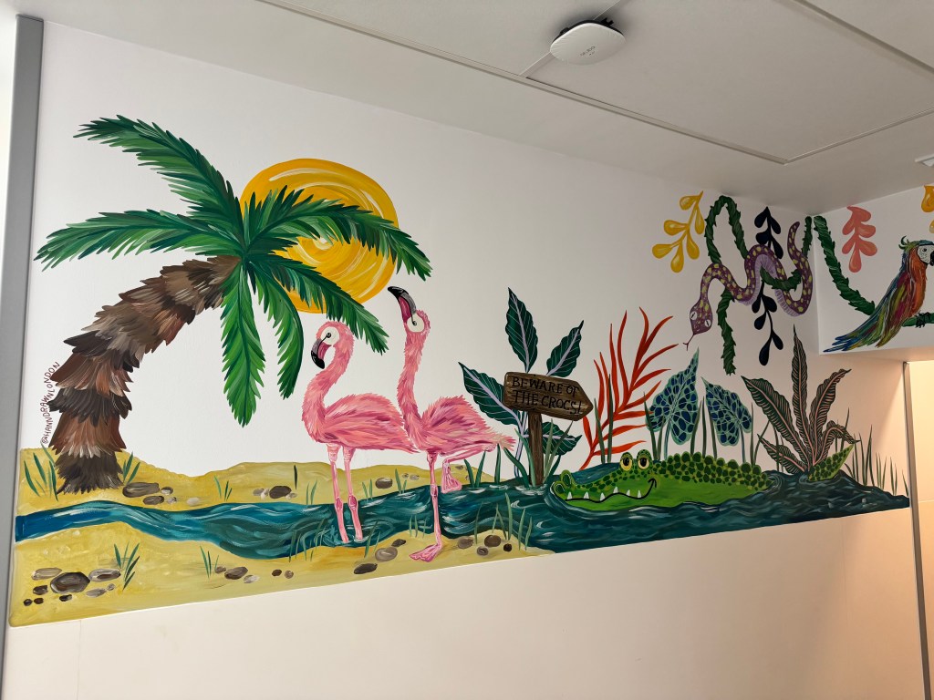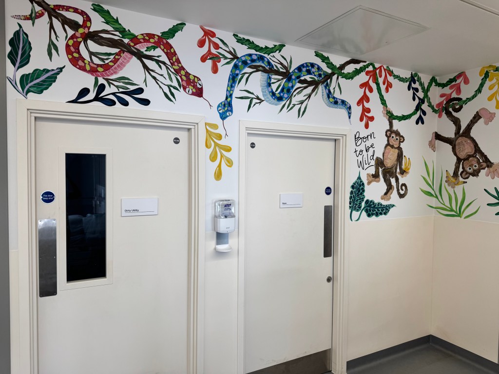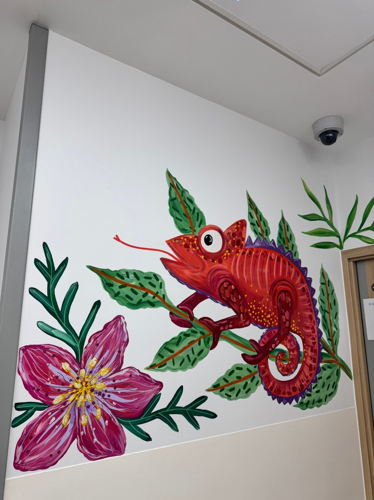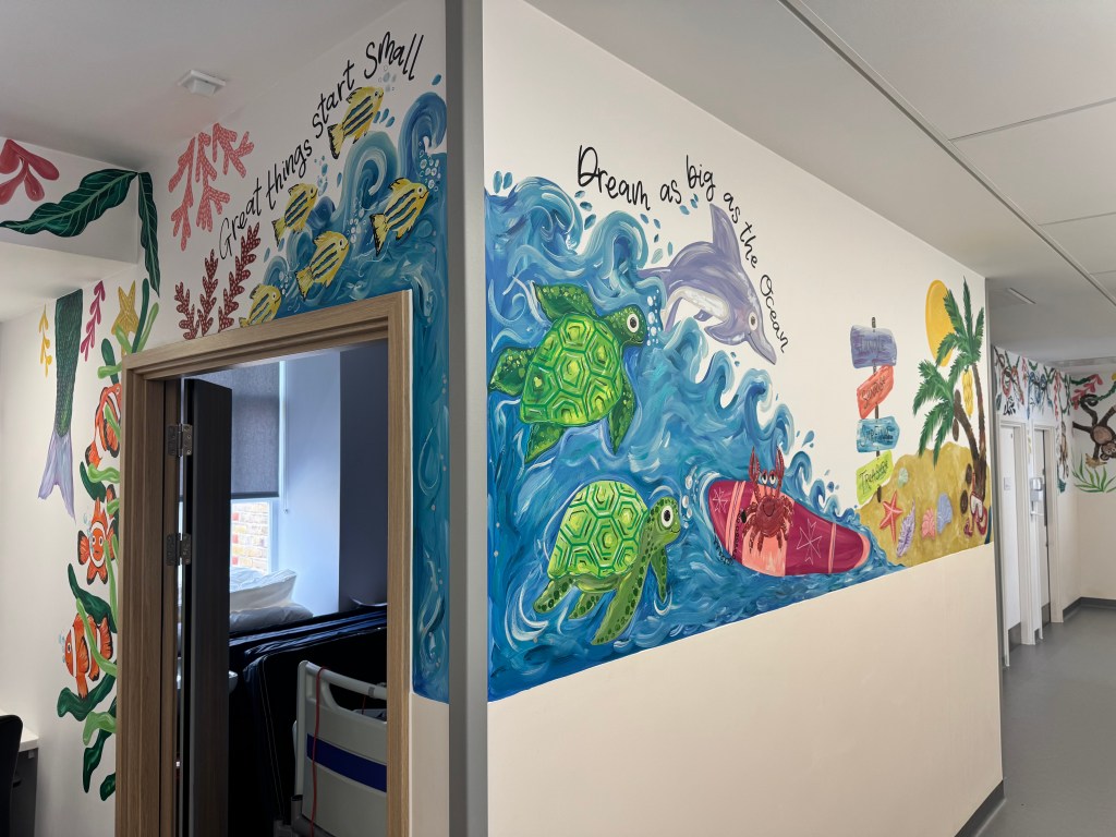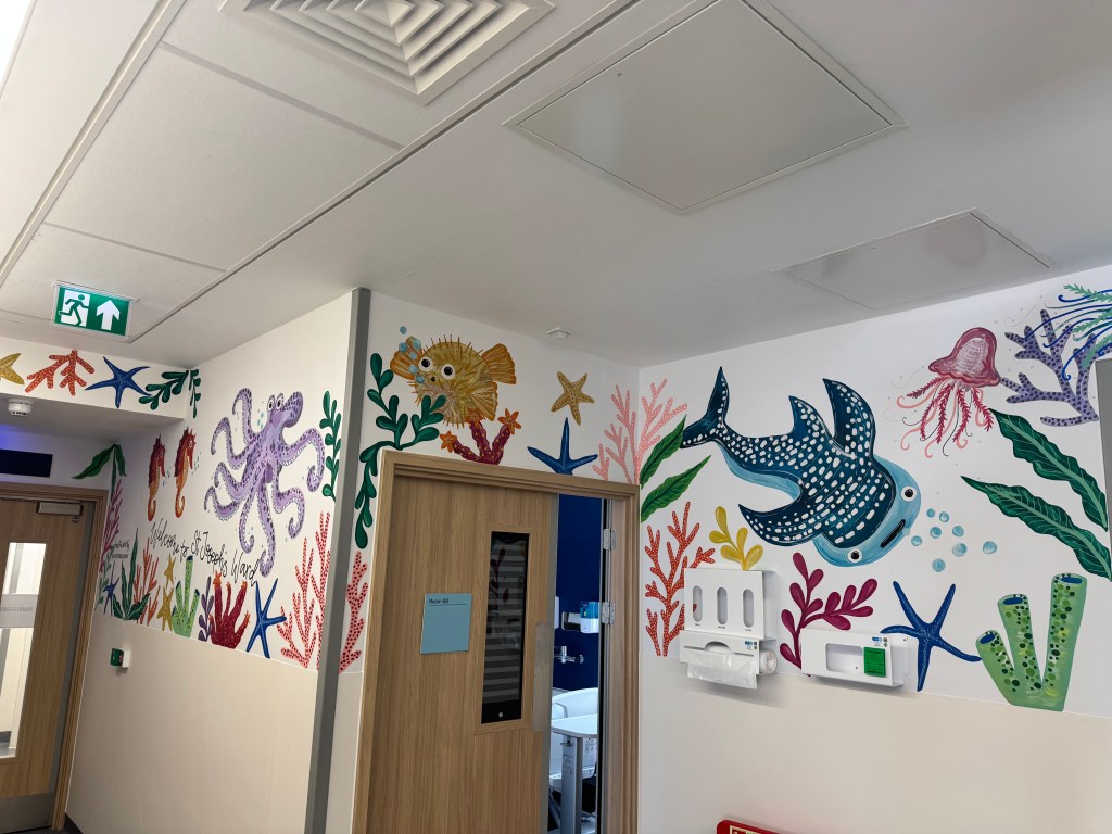 HannDrawn was commissioned by St John & Elizabeth Hospital to create a vibrant 100sqm mural for their new pediatric ward, telling a story from under the sea to a tropical jungle, designed to engage children of all ages.