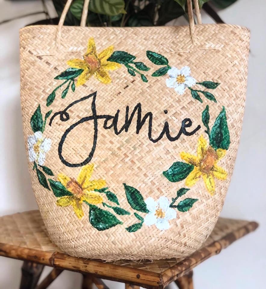 HannDrawn is one of the selected few ilustrators who paints custom bags for a beautiful brand Arche Living . She paints floral & fruity designs amongst her calligraphy on both rattan baskets and rattan placemats- Higher end personalised products