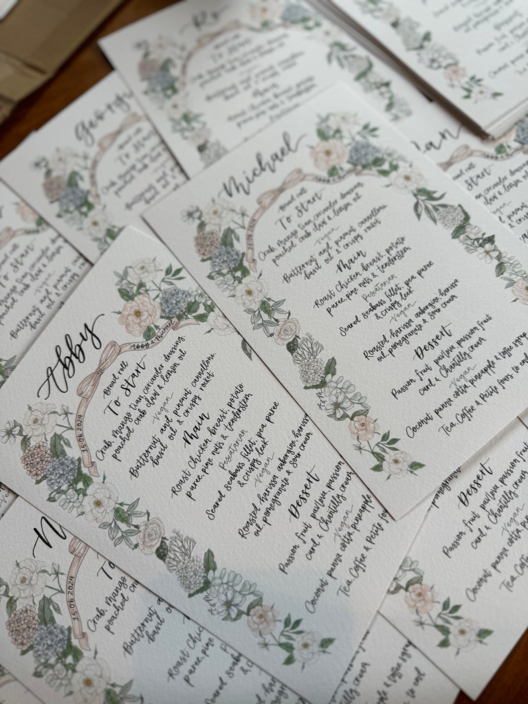 HannDrawn offers a bespoke, professional service to create personalised wedding stationery for your special day—from save the dates and invites to signage, table names, and seating plans. With options for custom calligraphy and illustrations of you, your venue, or landscape, each piece is tailored to reflect your vision.