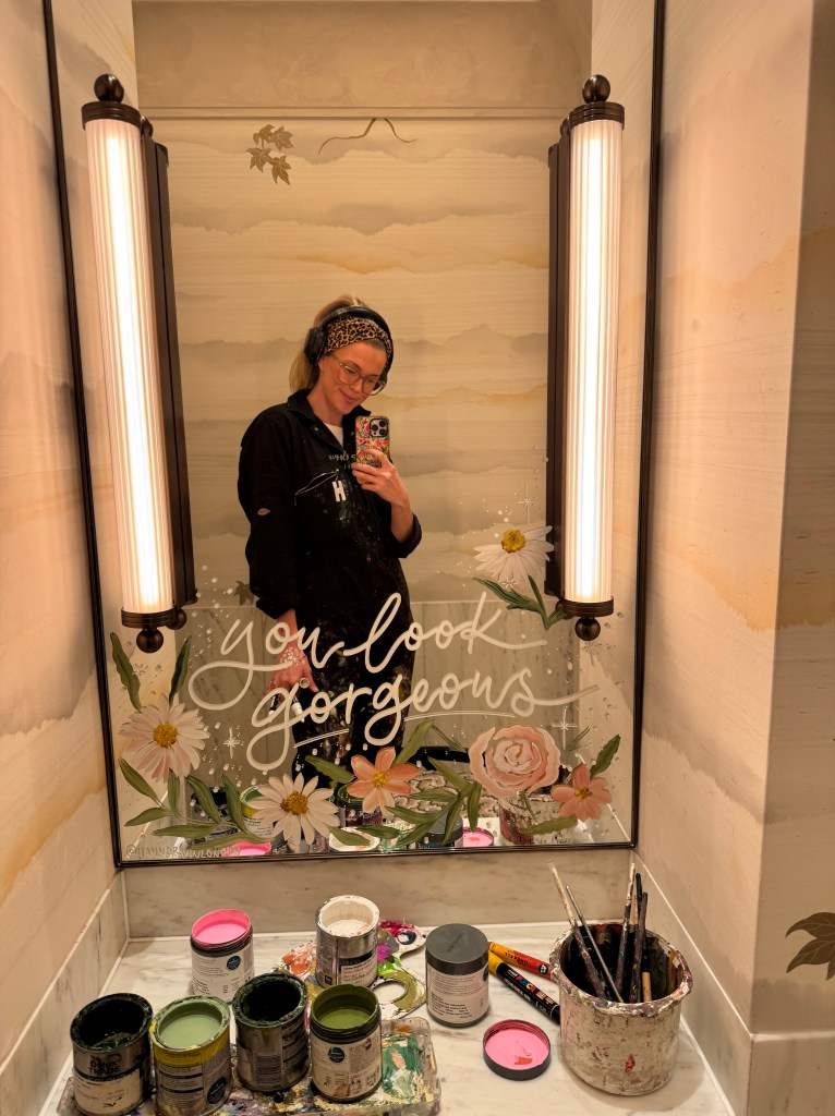 PS – Not only does she paint on shops, restaurants and office windows- she can come to your home too and brighten up the front of your house